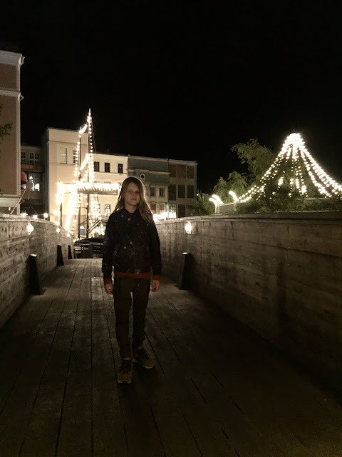 Vi var där fram till stängning. Mysigt när allt blev mörkt och alla lampor tog över. Köerna försvann och barnen kunde varva vid vissa karuseller.